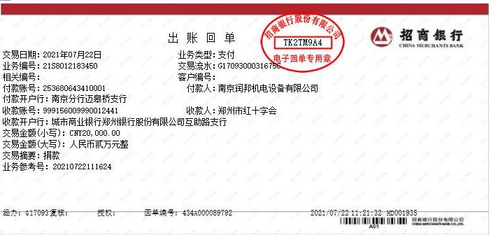 災(zāi)難面前,全國(guó)上下風(fēng)雨同行,同舟共濟(jì)。7月22日,潤(rùn)邦公司決定盡我們的綿薄之力馳援河南,通過鄭州市紅十字會(huì)捐款人民幣兩萬(wàn)元整,用于保障受災(zāi)地區(qū)人民群眾的生命安全、緊急救災(zāi)物資采購(gòu)等,助力鄭州市防汛救災(zāi)工作。